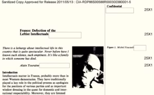 সম্প্রতি তথ্য অধিকার আইনের আওতায় করা একটি আবেদনের প্রেক্ষিতে এই নথির একটি পরিশোধিত অনুলিপি ফ্রান্স: ডিফেকশন অব লেফটিস্ট ইন্টেলেকচুয়ালনামে প্রকাশিত হয়েছে। বিস্ময়করভাবে, এই নথি উত্তরকাঠামোবাদী চিন্তকদের রাজনৈতিক অভিমুখকে ইতিবাচকভাবে দেখেছে। ইয়ানোভা বিশ্ববিদ্যালয়ের দর্শনের প্রফেসর ও র‍্যাডিকেল হিস্ট্রি ও দি পলিটিক্স অব আর্টএর লেখক গ্যাব্রিয়েল রকহিল ফরাসি উত্তরকাঠামোবাদ সম্পর্কিত সিআইএর মূল্যায়নকে এল এ রিভিউ অব বুকের জন্য সামারাইজ করেছেন এভাবে: